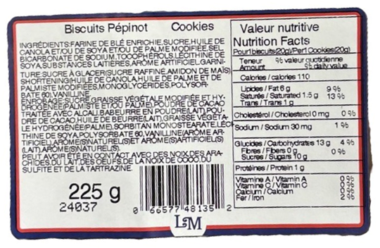 Paquets de 225g. Environ 11 à 12 biscuits par paquet.