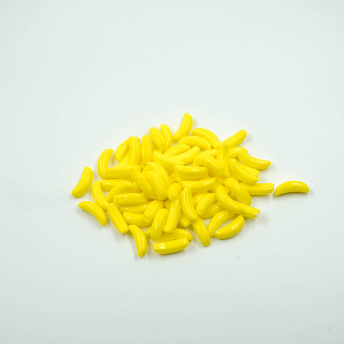 De petites bananes en poudre compressée enrobées d’une coquille dure.