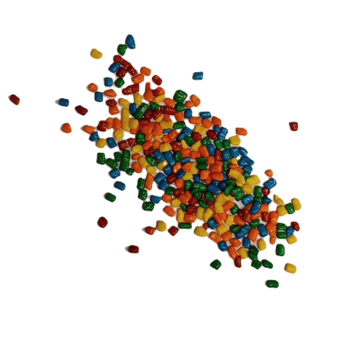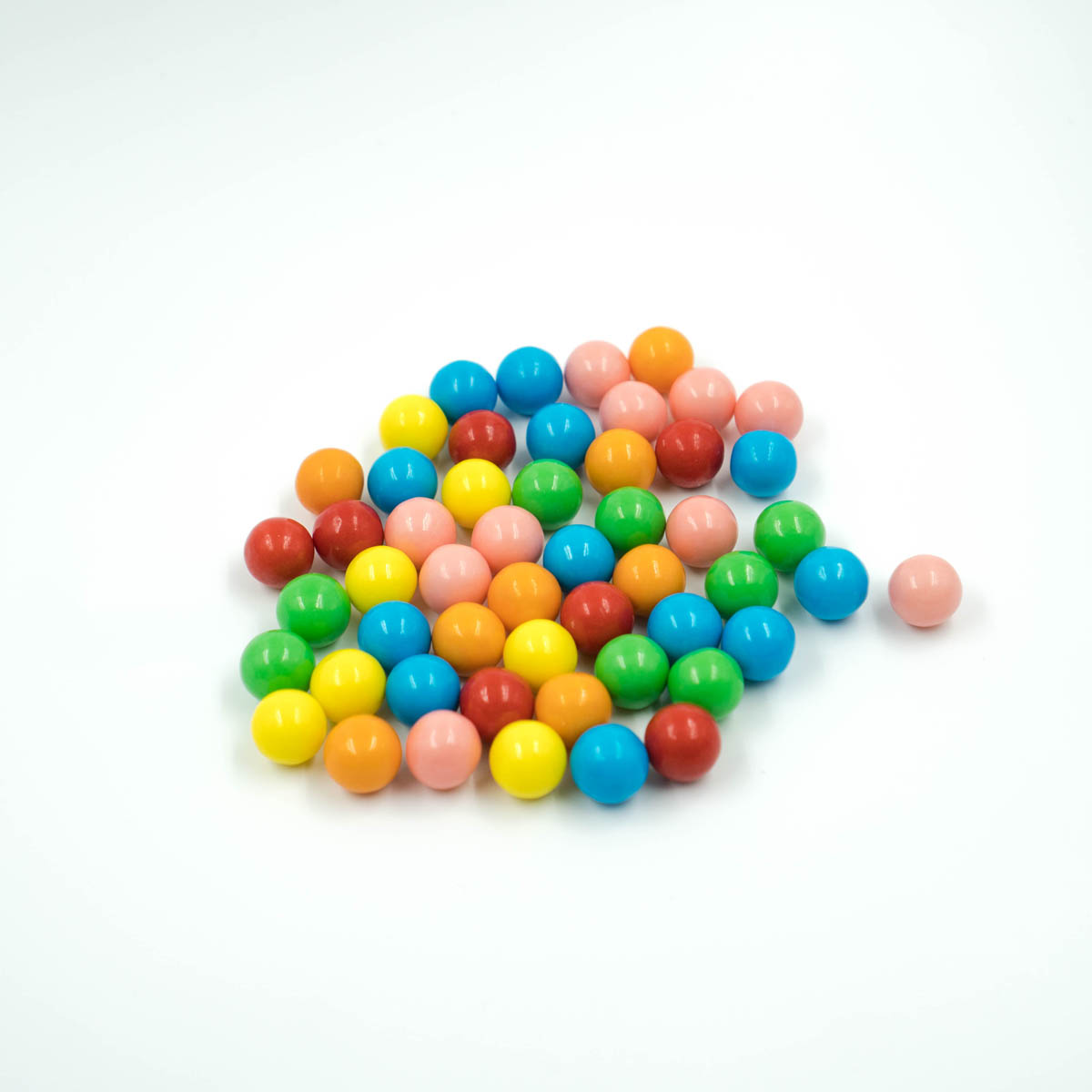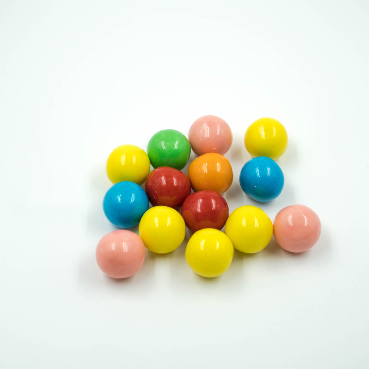 Petite boules de gomme balloune colorées et à saveur de fruits assortis. Ces boules de gomme ont un diamètre de 14mm (env. 9/16po).