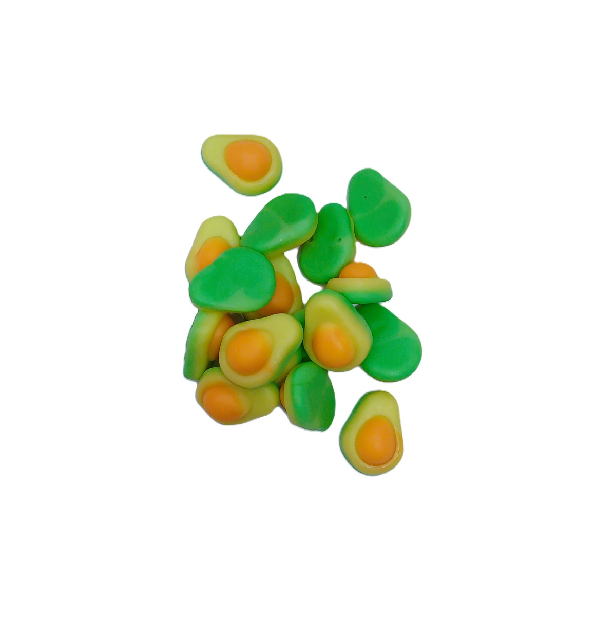 Bonbon gélifié en forme de demi avocat, saveur intense « tropicale », avec des notes d’ananas et de noix de coco.