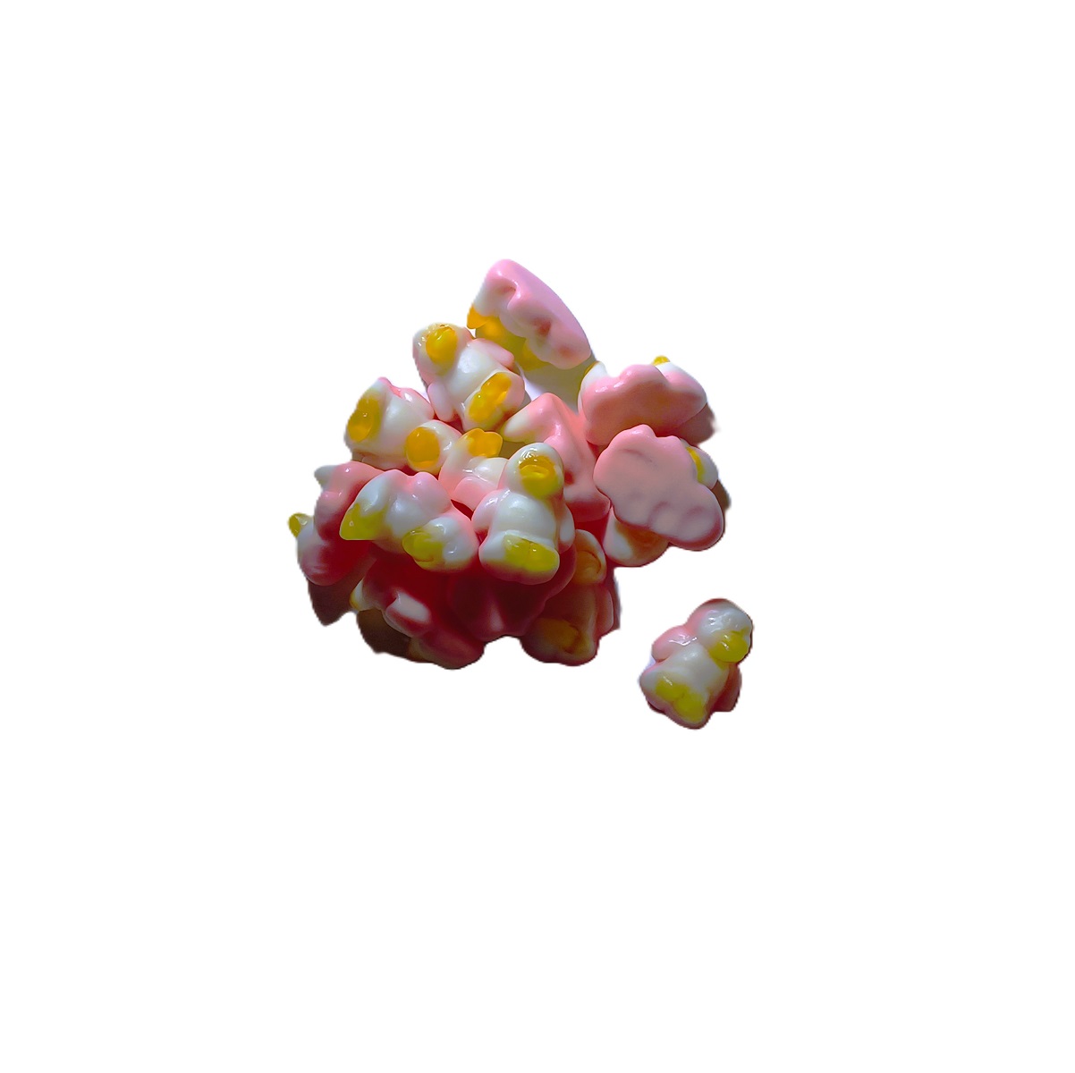 Bonbon gélifié en forme de pingouin et à saveur de lait aux fraises.