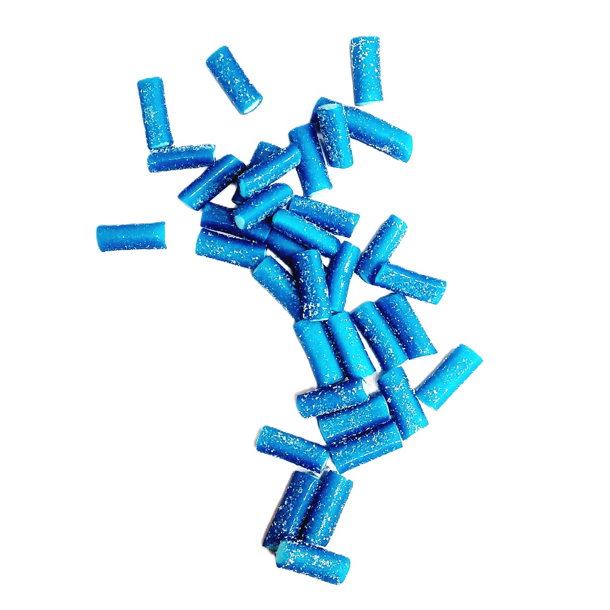 Mason jar filled with blue candies.