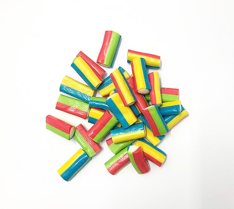 Saveurs prédominantes de pêche et d’orange.Le mélange de bonbons peut varier.