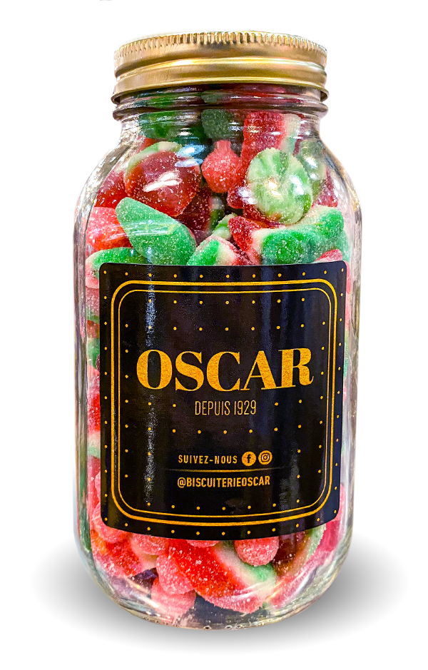 Saveurs prédominantes de fraise et de melon d’eau.Le mélange de bonbons peut varier.
